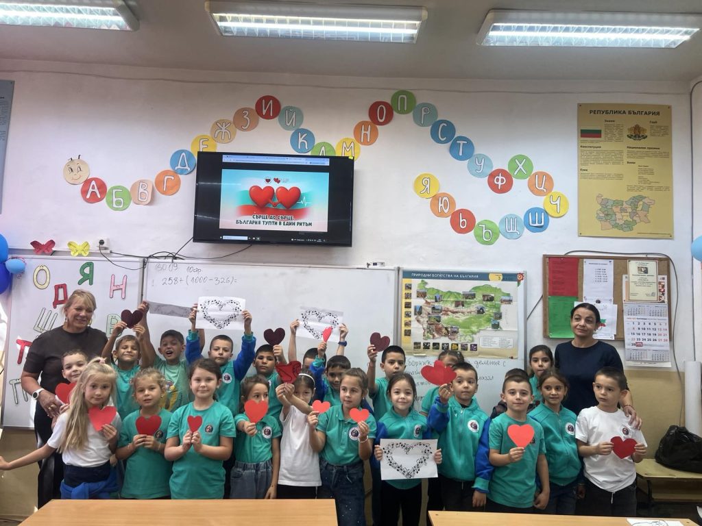В рамките на Час на класа бе представен здравен урок, подготвен от инициаторите, които с нагледни презентации насърчават грижата за сърцето и изграждането на здравна култура у децата.