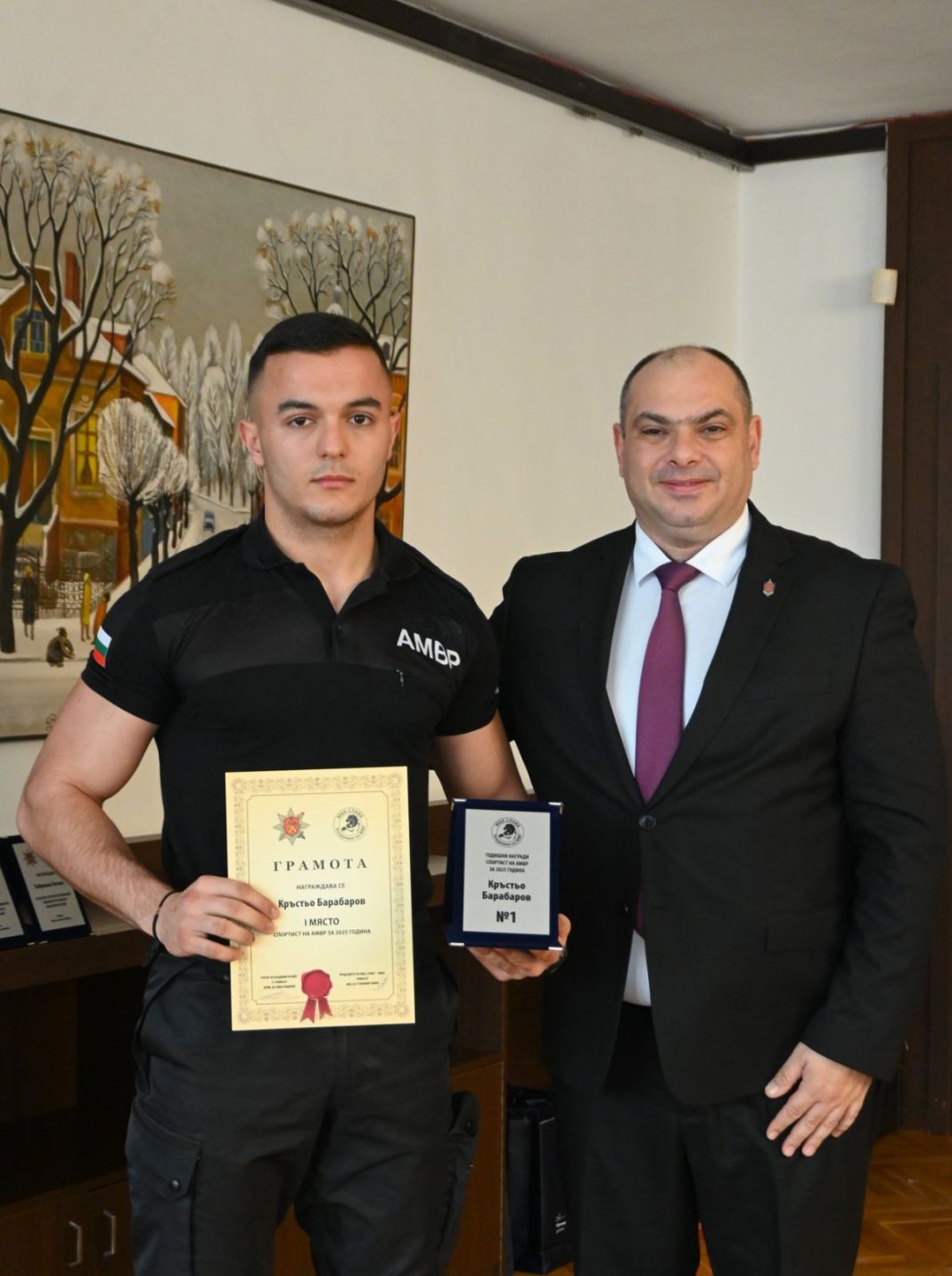 На специалната тържествена церемония в Академията на МВР наградите на спортистите връчиха заместник-министърът на вътрешните работи г-н Филип Попов, ректорът на АМВР старши комисар проф. д-р Иван Видолов, зам.-ректорът на АМВР комисар доц. д-р Симо Михов, председателят на Спортна асоциация – МВР и директор на ЦБПС към АМВР Чавдар Атанасов, директорът на Дирекция „Международно оперативно сътрудничество“ – МВР старши комисар Дамян Лечев и инспектор Симеон Гугалов, главен инструктор в ЦБПС, който е и ръководител на оперативния офис на Европейския полицейски спортен съюз (USPE).
