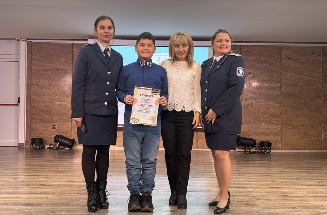 Редом с наградените служители и представител на Детското полицейско управление при РУ-Панагюрище е с високо отличие по повод петата Национална изложба за детска рисунка „Аз и детското полицейско управление“. На 2-ро място сред 119 творби е класирана рисунката на Калоян Должев, ученик от 3-ти клас на ОУ „Проф. Марин Дринов“ в гр. Панагюрище.