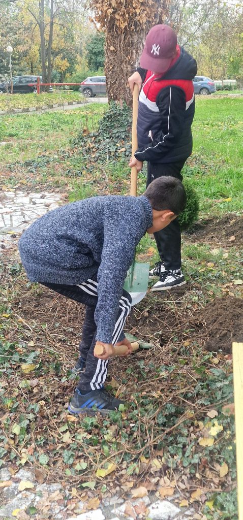 По време на засаждането на дръвчетата учениците участваха с истинска радост, превръщайки инициативата в празник на природата и общността. Малки и големи работиха рамо до рамо, усмихваха се, помагаха си и усетиха силата на сплотеността, когато общата цел е добра. Новата зеленина донесе повече чист въздух, красота и усмивки в училищния двор – подарък, който ще расте заедно с тях. Новите фиданки вече заемат своето място в двора, а гимназистите с желание поемат грижата да ги поливат и да следят как постепенно ще растат и ще се превърнат в символ на училищната общност.
