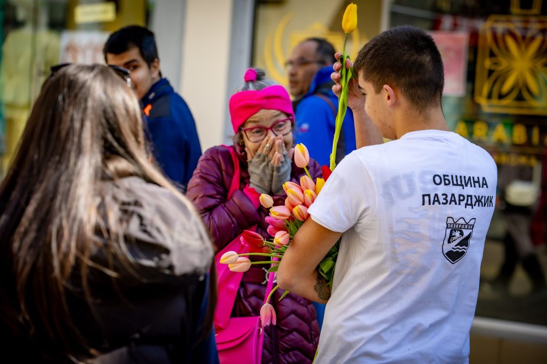 С малък, но сърдечен жест бе отбелязан Международният ден на жената в Пазарджик. По повод празника младежи доброволци подариха лалета на дамите в центъра на града. Инициативата е на Община Пазарджик и има за цел да изрази уважение и признателност към жените.
