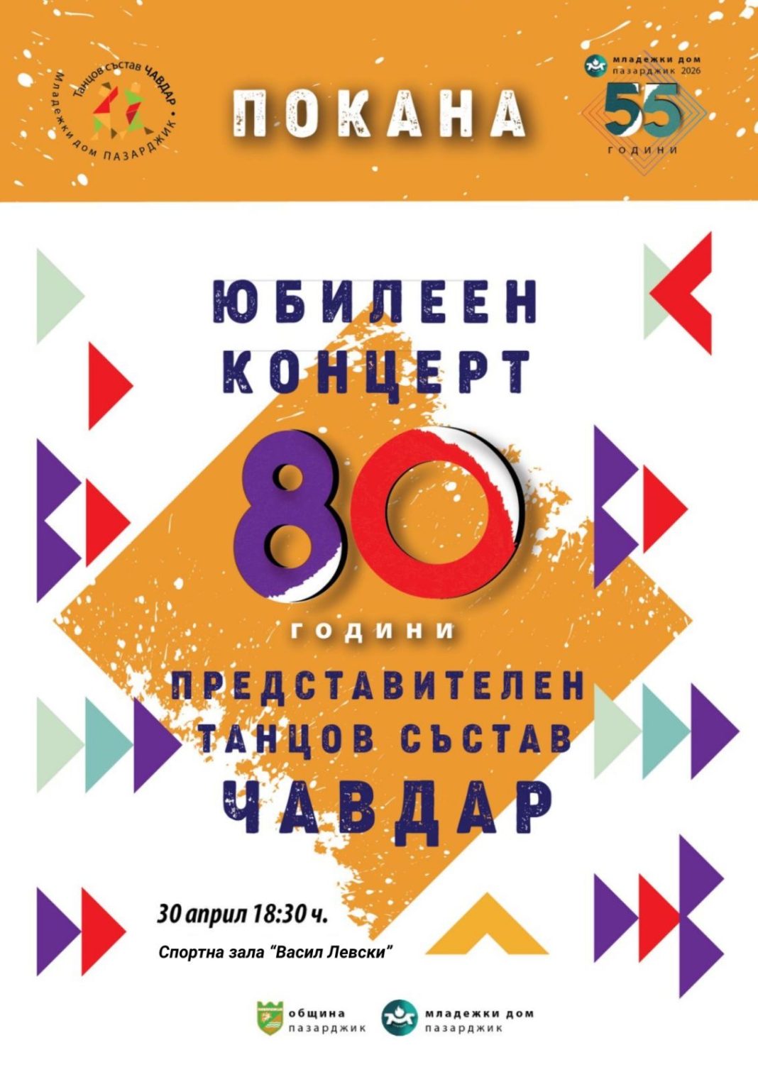 Представителен танцов състав „Чавдар“ към Младежки дом – Пазарджик празнува 80-годишнината си с мащабен концерт.