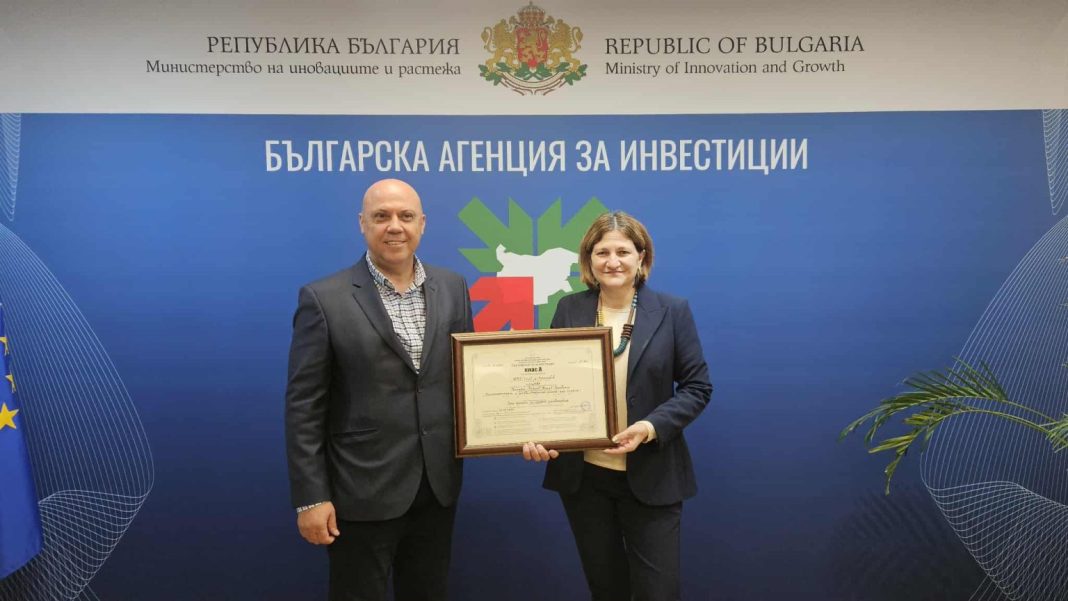Сертификатът беше официално връчен от изпълнителния директор на Българската агенция за инвестиции г-жа Мила Ненова на г-н Костадин Тошев, собственик на „Крез“ ЕООД.