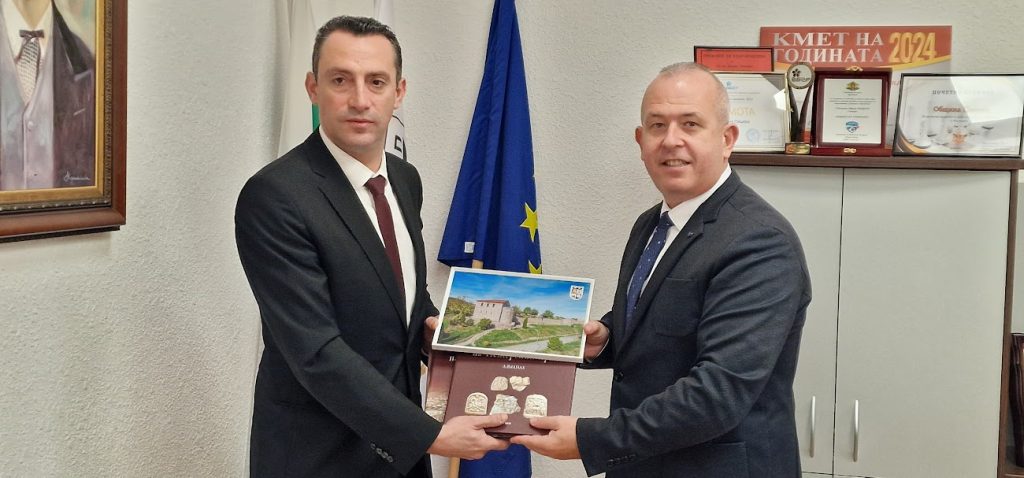 Йордан Младенов връчи като паметен дар на своя гост трилогията алманах „Осемте хилядолетия на Пещерския край“ и сувенир с изглед от крепостта „Перистера“.