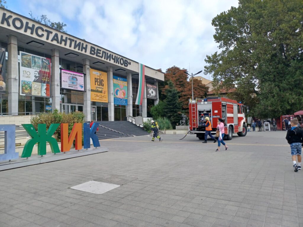 Учебно-тренировъчно занятие за потушаване на пожар в обществена сграда се провежда в центъра на Пазарджик. Два противопожарни автомобила с екипи огнеборци показват своите умения за ликвидиране на пожар в сградата на ДКТ „Константин Величков“. В занятието е предвидено и евакуиране на хора от сградата.