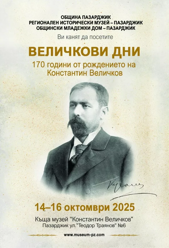 От 14 до 16 октомври 2025 г. ще се проведат традиционните Величкови дни. Тази година проявата е посветена на 170 години от рождението на Константин Величков. Организатори на събитието са Община Пазарджик, Регионален исторически музей – Пазарджик и Общински младежки дом – Пазарджик.