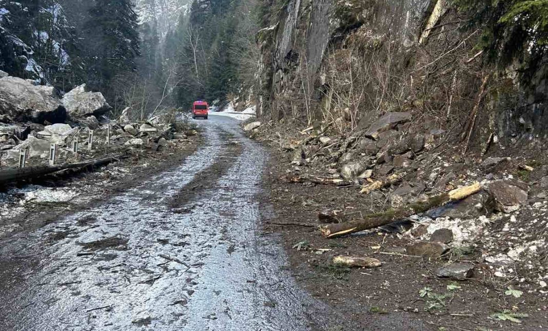 Голямо срутище се активизира по републикански път III – 843 и прегради пътя и река Рибна. Над 300 куб.м. скална маса е паднала днес към 13.00 часа и още големи късове са се пропукали.