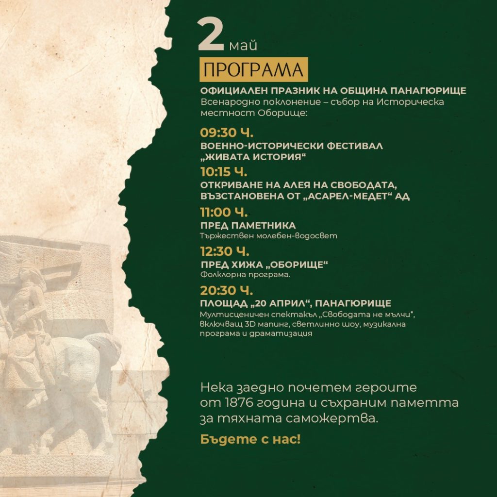 За всички жители и гости на община Панагюрище е подготвена богата програма за 3-те дни на честванията: