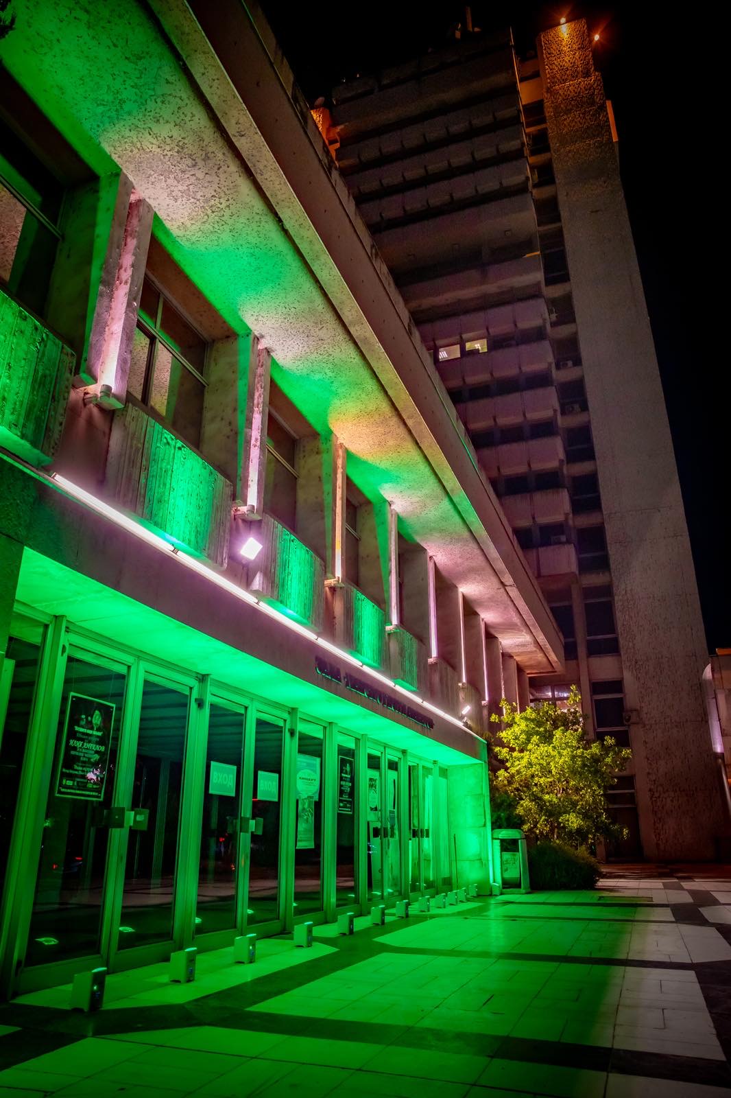 Зала „Маестро Георги Атанасов“ беше осветена в зелено като част от глобалната кампания „Light Up for Mito“, организирана по повод Световната седмица на митохондриалните заболявания (15–21 септември 2025 г.).